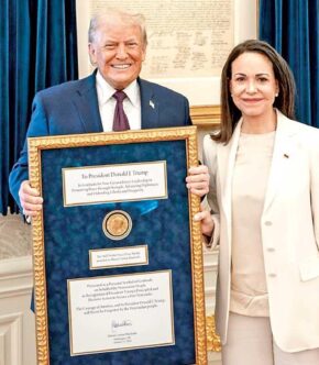 La líder opositora venezolana María Corina Machado le entregó ayer su medalla del Nobel de la Paz...