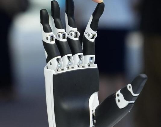 Imagen del 20 de junio de 2025 de un visitante tocando el dedo de una mano humanoide en el Centro de Exposiciones Zhongguancun, en Beijing, capital de China. (Xinhua/Zheng Huansong)