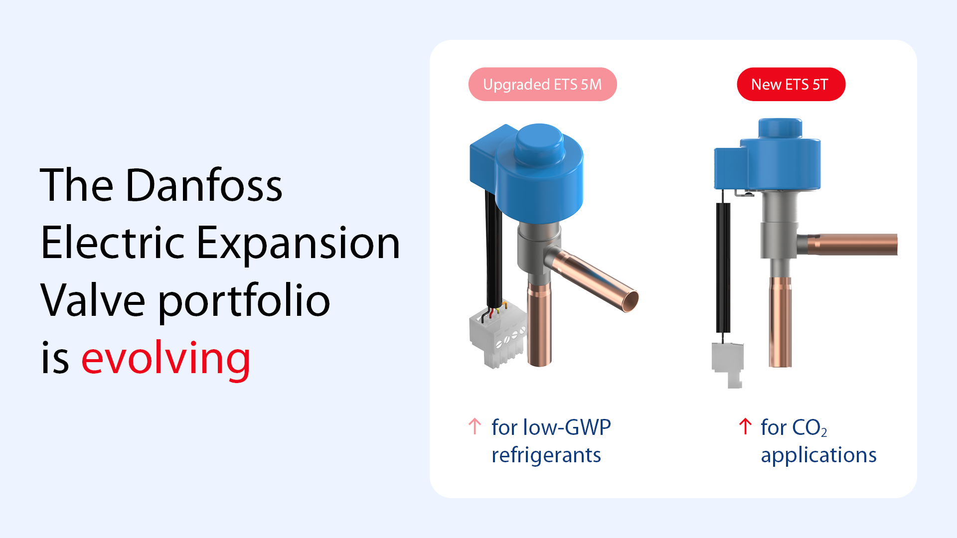 Danfoss dio a conocer la válvula ETS 5T como el último paso en la continua labor para apoyar la transición de refrigerantes y ofrecer a los profesionales de HVAC&R la mayor variedad posible de opciones a la hora de diseñar sistemas de refrigeración basados en CO₂.