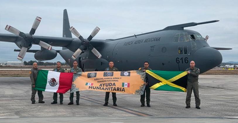 Despegaron de la pista de la Base Aérea Militar (BAM) número 1, ubicada en Santa Lucía, Estado de México, para aterrizar en el Aeropuerto Internacional “Sir Donald Sangster”, Montego Bay, en el país caribeño.