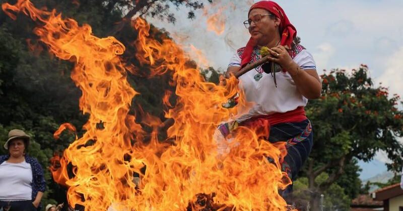 Desde tempranas horas, los participantes prepararon el espacio con grandes ofrendas florales y semillas, incluyendo cacao, frijol y tabaco, así como panela, un tipo de azúcar. No faltó la fogata para el encendido de una gran llama, símbolo central del ritual.