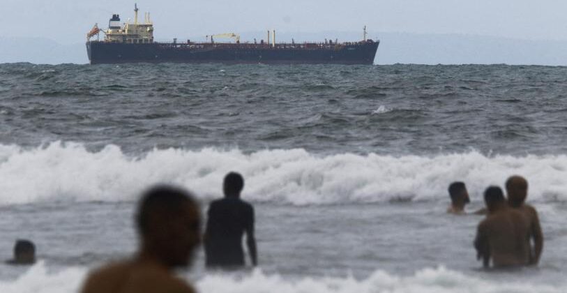 El petrolero con bandera de Guinea MT Bandra, que se encuentra bajo sanciones, se ve parcialmente junto a otro buque en la terminal El Palito, cerca de Puerto Cabello, Venezuela.