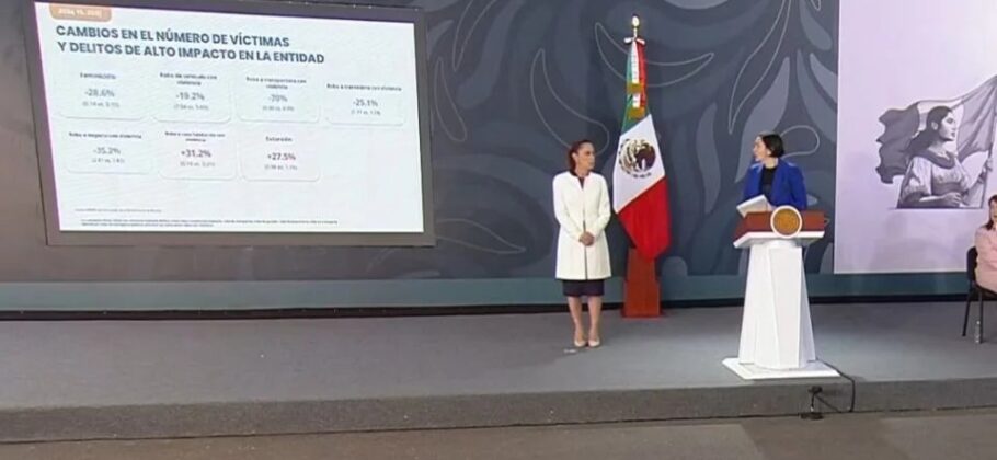 La secretaria afirmó que todos los demás delitos de alto impacto han ido a la baja, como los feminicidios con 15.2% menos casos, el secuestro extorsivo con una reducción del 11.3% y robo a transeúnte con violencia con 15.9%.