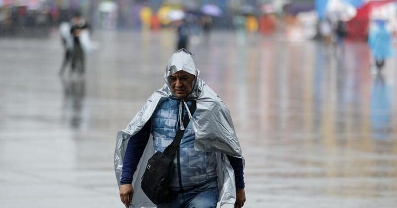 Un hombre camina bajo la lluvia, en la Ciudad de México, capital de México, el 18 de junio de 2025. (Xinhua/Francisco Cañedo)