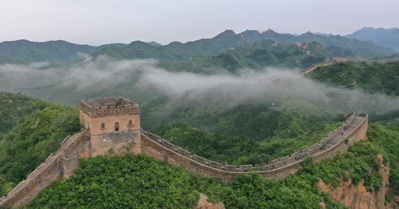 Vista aérea tomada con un dron el 4 de agosto de 2025 de la sección Jinshanling de la Gran Muralla, en el distrito de Luanping de Chengde, en la provincia de Hebei, en el norte de China. (Xinhua/Zhou Wanping)