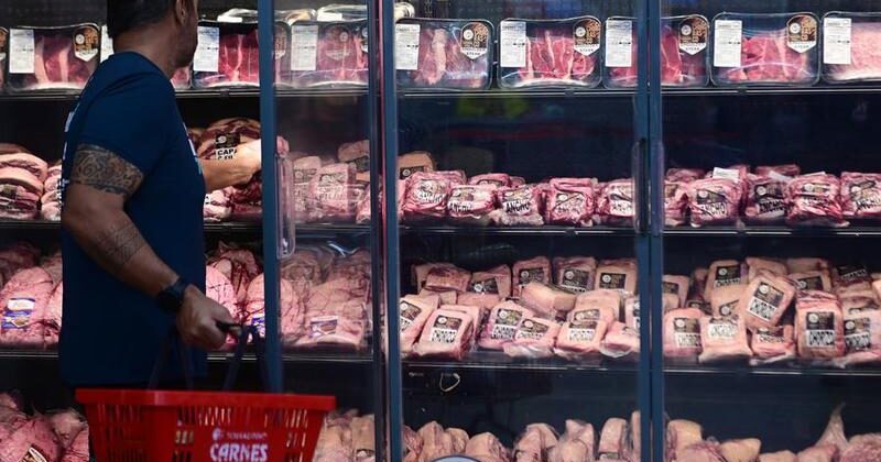 Un hombre compra carne en un mercado, en Brasilia, Brasil, el 12 de julio de 2025. (Xinhua/Lucio Tavora)