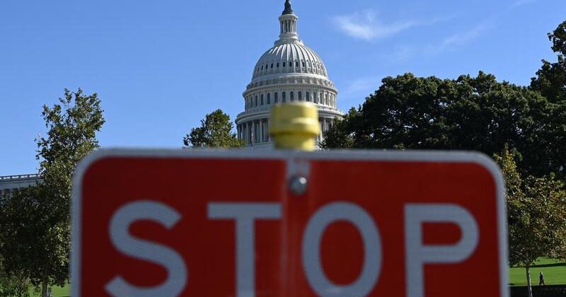 El edificio del Capitolio estadounidense y una señal de tránsito son vistos en Washington, D.C., Estados Unidos, el 1 de octubre de 2025. (Xinhua/Li Rui)