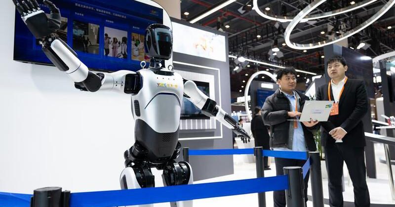 Imagen de un robot con funciones de percepción y control de movimiento durante la Conferencia de Internet Industrial 5G+ de China 2025, en Wuhan, capital de la provincia de Hubei, en el centro de China, el 21 de noviembre de 2025. (Xinhua/Xiao Yijiu)
