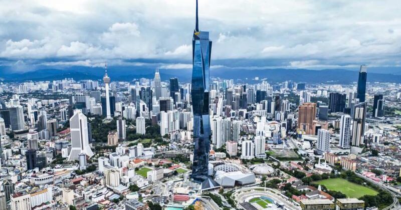 Vista aérea, tomada con un dron el 24 de octubre de 2025, de la torre Merdeka 118, donde se celebran las conversaciones económicas y comerciales entre China y Estados Unidos, en Kuala Lumpur, Malasia. (Xinhua/Cheng Yiheng)