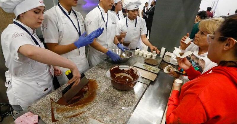 Imagen del 27 de junio de 2025 de estudiantes de gastronomía preparando bebidas y degustaciones de cacao en el Centro de Convenciones Metropolitano de Quito, en Quito, capital de Ecuador. (Xinhua/Ricardo Landeta)