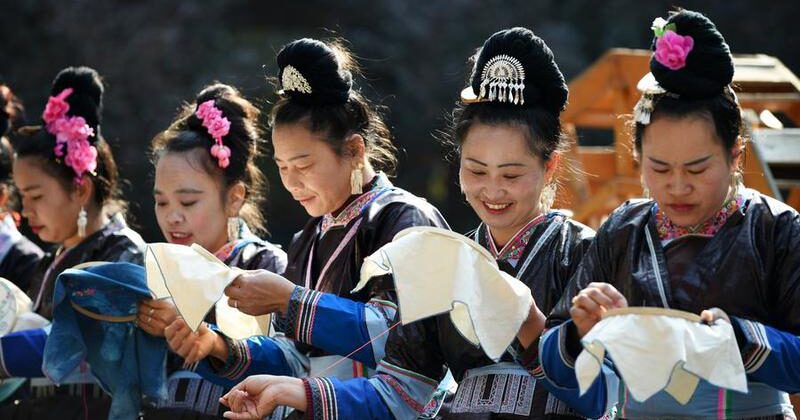 BEIJING, 28 nov (Xinhua) — En el taller de Zunyi Red Ribbon Culture, en la ciudad de Zunyi de la provincia de Guizhou, en el suroeste de China, se escuchan de vez en cuando las indicaciones de la maestra Zhang Zhongfang guiando a las bordadoras. Siguiendo el sonido, se ven manos ágiles que trazan, levantan, perforan o cosen sobre la tela. En poco tiempo, los patrones comienzan a tomar forma.