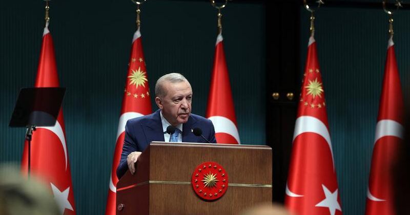 El presidente turco, Recep Tayyip Erdogan, habla durante una conferencia de prensa, en el Complejo Presidencial, en Ankara, Turquía, el 1 de diciembre de 2025. (Xinhua/Mustafa Kaya)