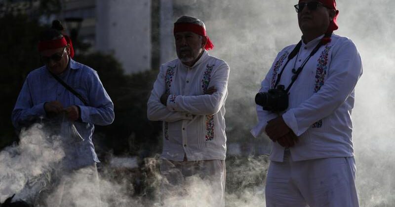 Por la mañana, la presidenta Sheinbaum encabezó la ceremonia de izamiento de la bandera nacional a media asta en memoria de las víctimas de los sismos del 19 de septiembre de 1985 y 2017, en la principal plaza de la capital mexicana.