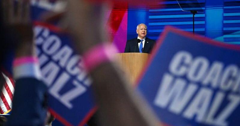 El gobernador del estado de Minnesota, Tim Walz, habla en la Convención Nacional Demócrata en Chicago, Estados Unidos, el 21 de agosto de 2024. (Xinhua/Li Rui)