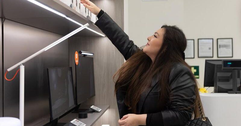 Imagen del 26 de julio de 2024 de Valeria Ramírez revisando una cámara de vigilancia para el hogar en la tienda de la marca china Xiaomi, en la Ciudad de México, capital de México. (Xinhua/Li Mengxin)