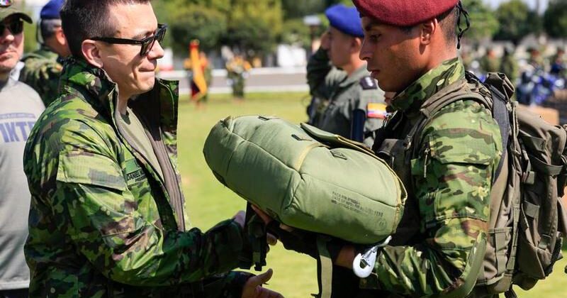 La entrega, realizada durante una ceremonia en el Fuerte Militar Eplicachima, en el sur de Quito, incluyó 54 camionetas pickup, 24 motocicletas, seis drones, 50.200 uniformes y botas, 350 paracaídas, equipos de comunicaciones y raciones de combate.