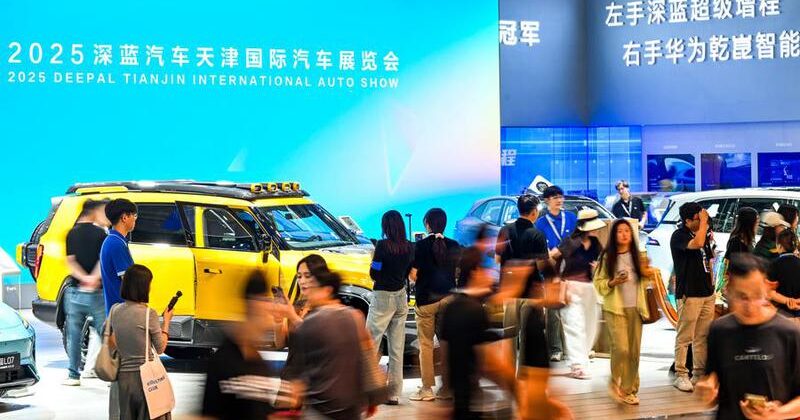 Visitantes del estand de Deepal durante el Salón del Automóvil de China 2025 en Tianjin, en el norte de China, el 30 de septiembre de 2025. (Xinhua/Zhao Zishuo)