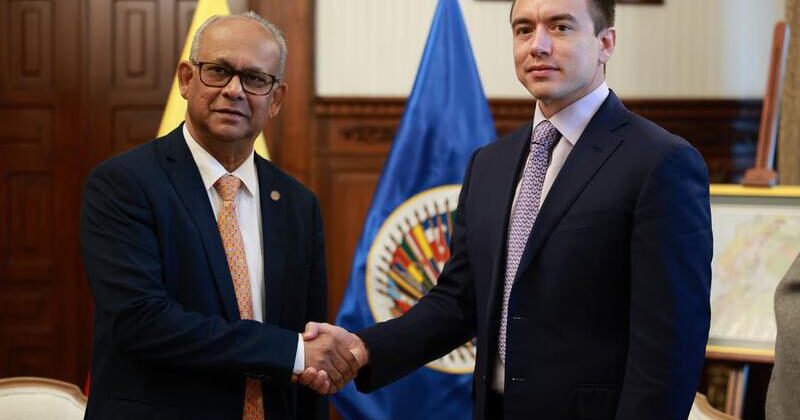 De acuerdo con la cancillería ecuatoriana, Ramdin, diplomático de origen surinamés, llegó el pasado sábado a la ciudad de Quito, la capital ecuatoriana, acompañado del secretario de Seguridad Multidimensional de la OEA, Iván Marques, para fortalecer la cooperación en materia de seguridad y desarrollo.