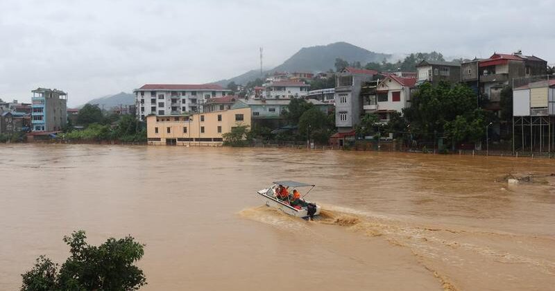 Imagen del 7 de octubre de 2025 de personal de rescate patrullando las áreas inundadas, en la provincia de Cao Bang, Vietnam. (Xinhua/VNA)