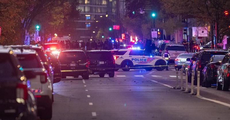Imagen del 26 de noviembre de 2025 de la policía vigilando después del tiroteo a dos integrantes de la Guardia Nacional de Estados Unidos cerca de la Casa Blanca, en Washington, D.C., Estados Unidos. (Xinhua/Hu Yousong)