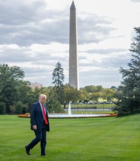 El presidente de Estados Unidos, Donald Trump, camina por el Jardín Sur a su llegada a la Casa Blanca, en Washington D. C., el 10 de octubre de 2025. (Xinhua/Hu Yousong)
