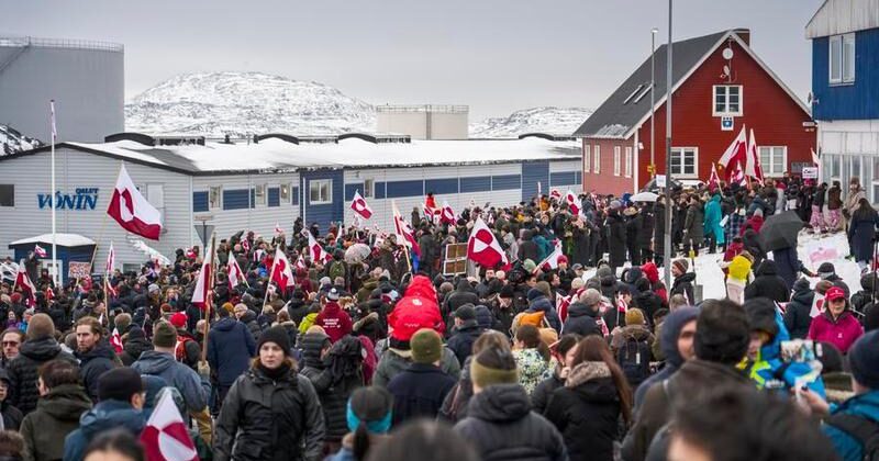 Imagen del 17 de enero de 2026 de personas asistiendo a una manifestación en contra de las acciones y comentarios de Estados Unidos que sugieren control sobre Groenlandia, en Nuuk, capital de Groenlandia, un territorio autónomo de Dinamarca. (Xinhua/Anders Kongshaug)