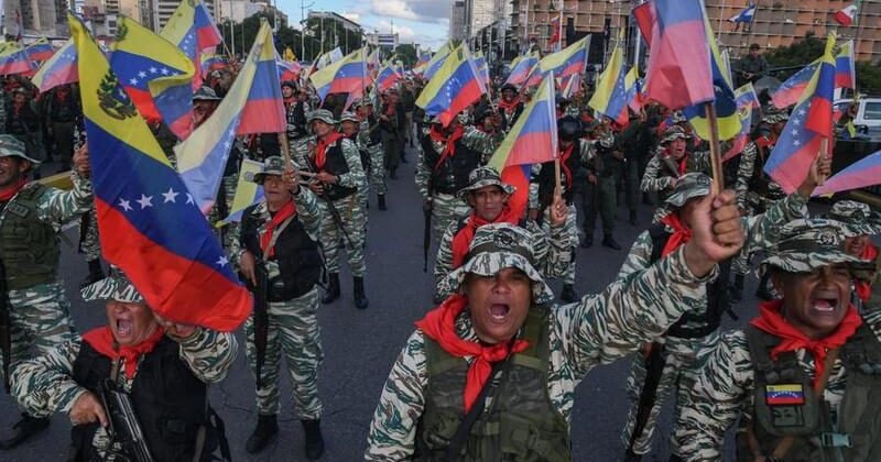 Integrantes de la Milicia Bolivariana participantes en una marcha, en Caracas, capital de Venezuela, el 23 de septiembre de 2025. (Xinhua/Marcos Salgado)