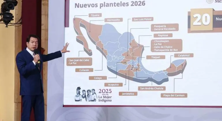 El secretario de Educación Pública explicó que en 2026 los 20 nuevos Bachilleratos Tecnológicos se ubicarán en los municipios con mayor necesidad; las 52 ampliaciones se realizarán en 31 entidades del país, y los 130 nuevos Ciberbachilleratos estarán en municipios incluidos en los Planes de Justicia de los Pueblos Indígenas, el Plan Balsas, los Polos de Desarrollo y Municipios Prioritarios de Paz.